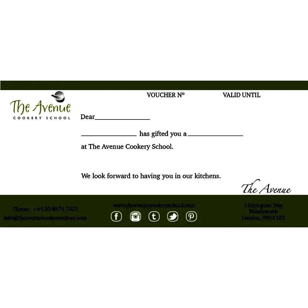 The Avenue Gift Voucher is a perfect gift for colleagues, family and friends! Whether for a birthday, Christmas, wedding, or whatever occasion, this is the perfect present for any foodie or for someone who needs to learn to cook!