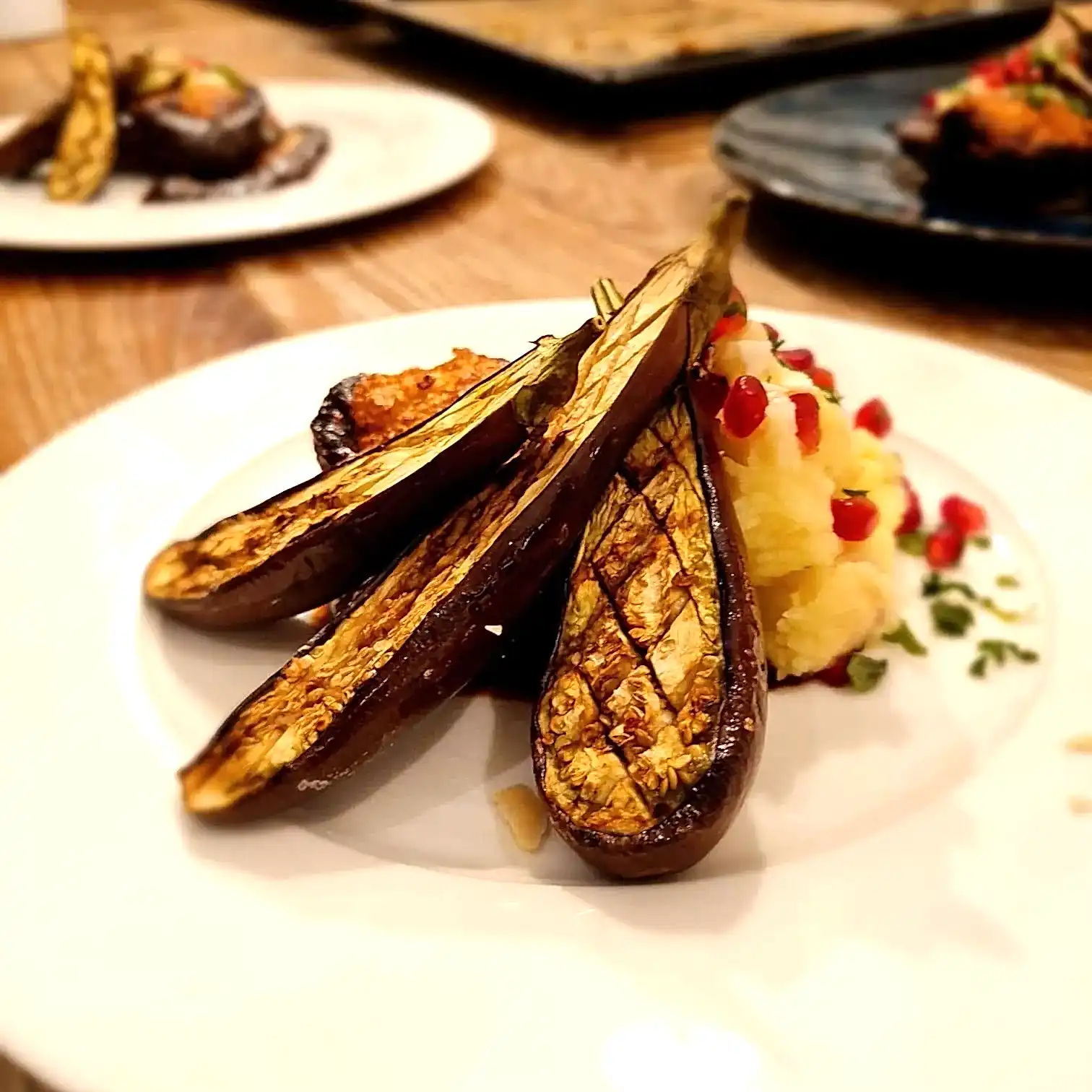 Sumac & Pomegranate Chicken with Skordalia and Griddled Aubergine